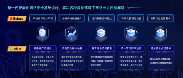 2021年4月安恒EDR發(fā)布終端準入系統(tǒng),終端準入系統(tǒng)以資產(chǎn)為視角,提供安全可視,實現(xiàn)資產(chǎn)風險識別,令安全防護無死角,做到“設備可知、入網(wǎng)可信、邊界可控,行為可查,安全可控”。