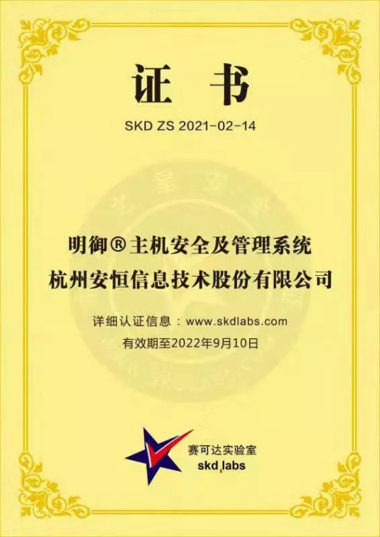 2021年9月30日安恒EDR在測試中憑借在病毒防護及勒索病毒防護等多方面優(yōu)異的表現(xiàn),順利通過國際知名第三方網(wǎng)絡信息安全測評認證機構(gòu)賽可達實驗室認證,被授予 “東方之星”證書(SKD ZS2021-02-14),本次獲獎證明了安恒EDR已經(jīng)具備國際水平。