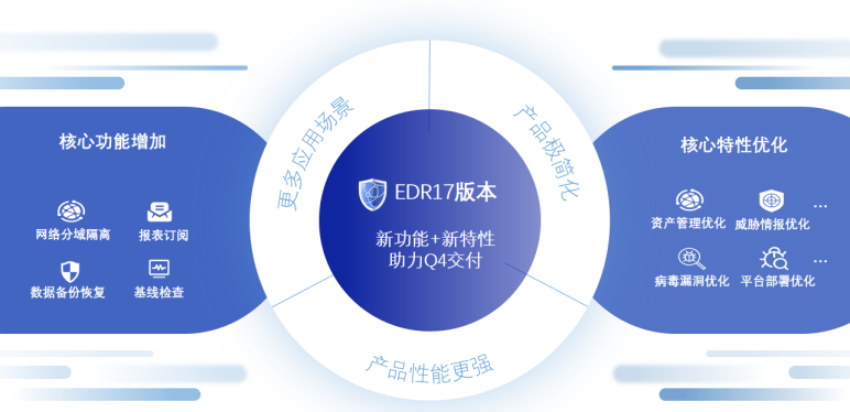EDR V2.0.17版本于2021年12月24日重磅發(fā)布,此版本不僅推出了網(wǎng)絡分域、基線檢查等全新功能、并且針對原有的核心功能進行深層次優(yōu)化—令“強點更強”。