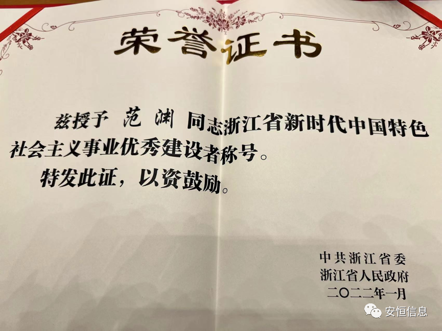 安恒信息董事長范淵榮獲浙江省新時(shí)代中國特色社會(huì)主義事業(yè)優(yōu)秀建設(shè)者