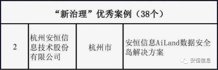?其中,“新技術”聚焦人工智能、大數據、云計算、區塊鏈、新一代網絡通信、集成電路、量子信息、柔性電子等領域,以發展新產業、壯大數字經濟生產力為目標,評選出24個自主創新性強、應用前景好的案例。“新治理”聚焦數字化改革,圍繞政府數據資源開放共享、城市大腦、未來社區、數字鄉村、數字園區、數字貿易、平臺治理等領域,以實現治理數字化為目標,評選出38個應用效果明顯、社會價值突出、可復制推廣的案例。安恒信息兩項方案分別入圍其中。