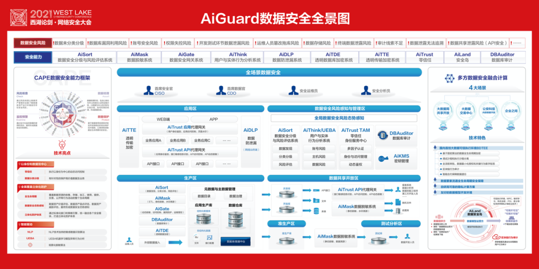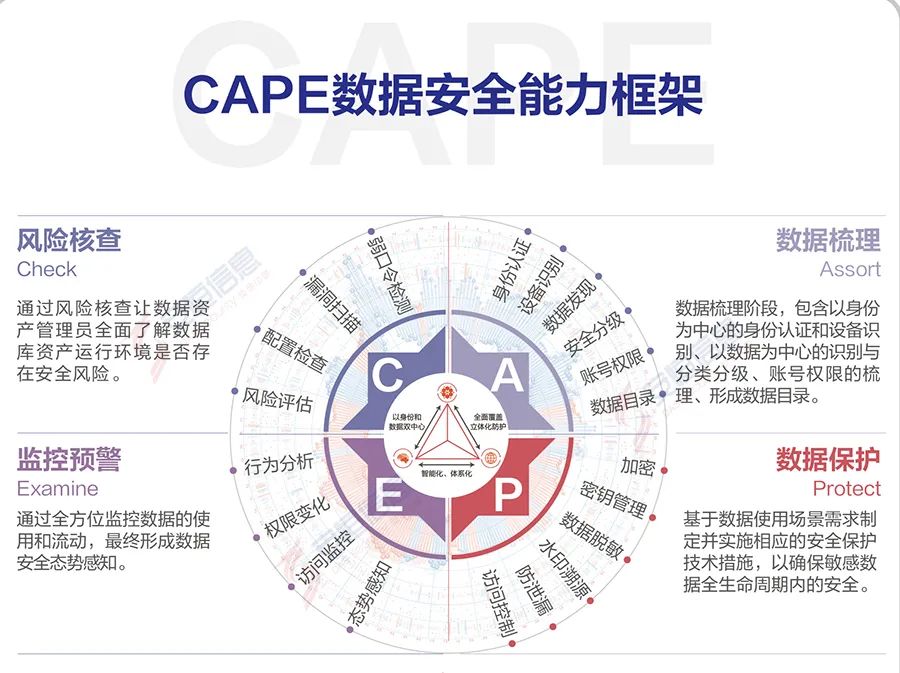 安恒信息站在時代與理論的前沿,從創立之初就關注數據安全,并在多年來不斷完善、更新。2021年7月,在《數據安全法》實施前,發布數據安全整體解決方案,包含“CAPE”數據全生命周期防護體系、數據安全咨詢服務體系、AiLand數據安全島、AiTrust零信任解決方案、AiDSC數據安全管控平臺、EDR與數據勒索防護等六大產品服務,上線“一網統管”數字安全系列產品。