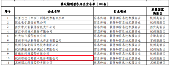首批試點(diǎn)國家高新區(qū)創(chuàng)新積分企業(yè)名單出爐,安恒信息名列前茅