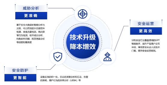 另一方面,AI和大模型技術也促進了安全產品和服務革新,有助于網絡安全防護“盾”優化升級。生成式人工智能能極大提高風險識別效率,在一定程度上彌補現有網絡人才缺口,讓威脅分析更準確、安全運營更高效、安全防護更智能。