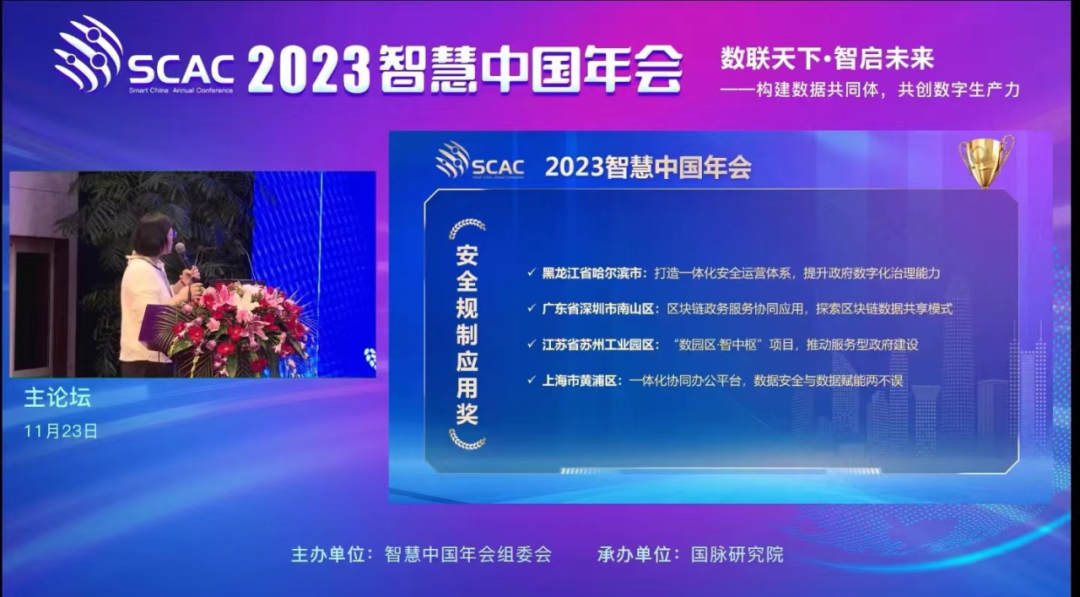 會上開展了2023(第五屆)數字政府特色評選活動,安恒信息助力哈爾濱市大數據中心落地的“打造一體化安全運營體系,提升政府數字化治理能力”案例榮獲“安全規制應用獎”。