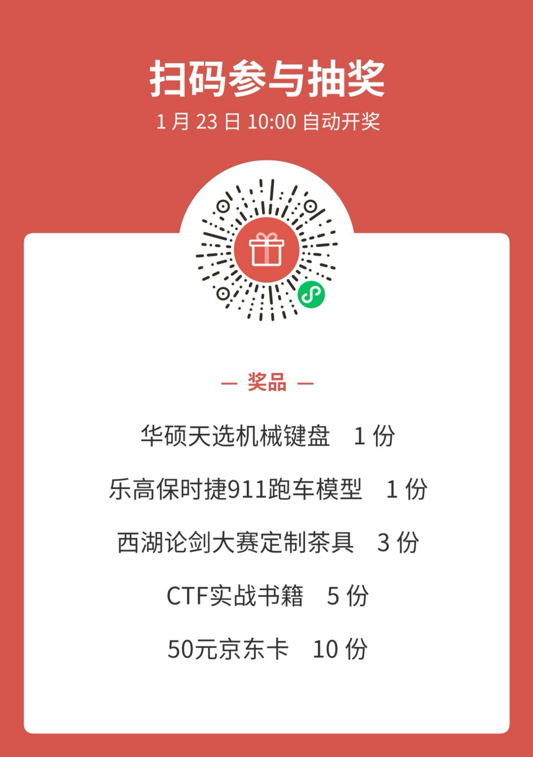 關(guān)注知乎用戶@安恒機器人,在知乎平臺參與官方發(fā)布的“第七屆西湖論劍大賽”話題討論,截止大賽報名時間前,官方將精選20位優(yōu)質(zhì)評論發(fā)放大賽禮品一份。