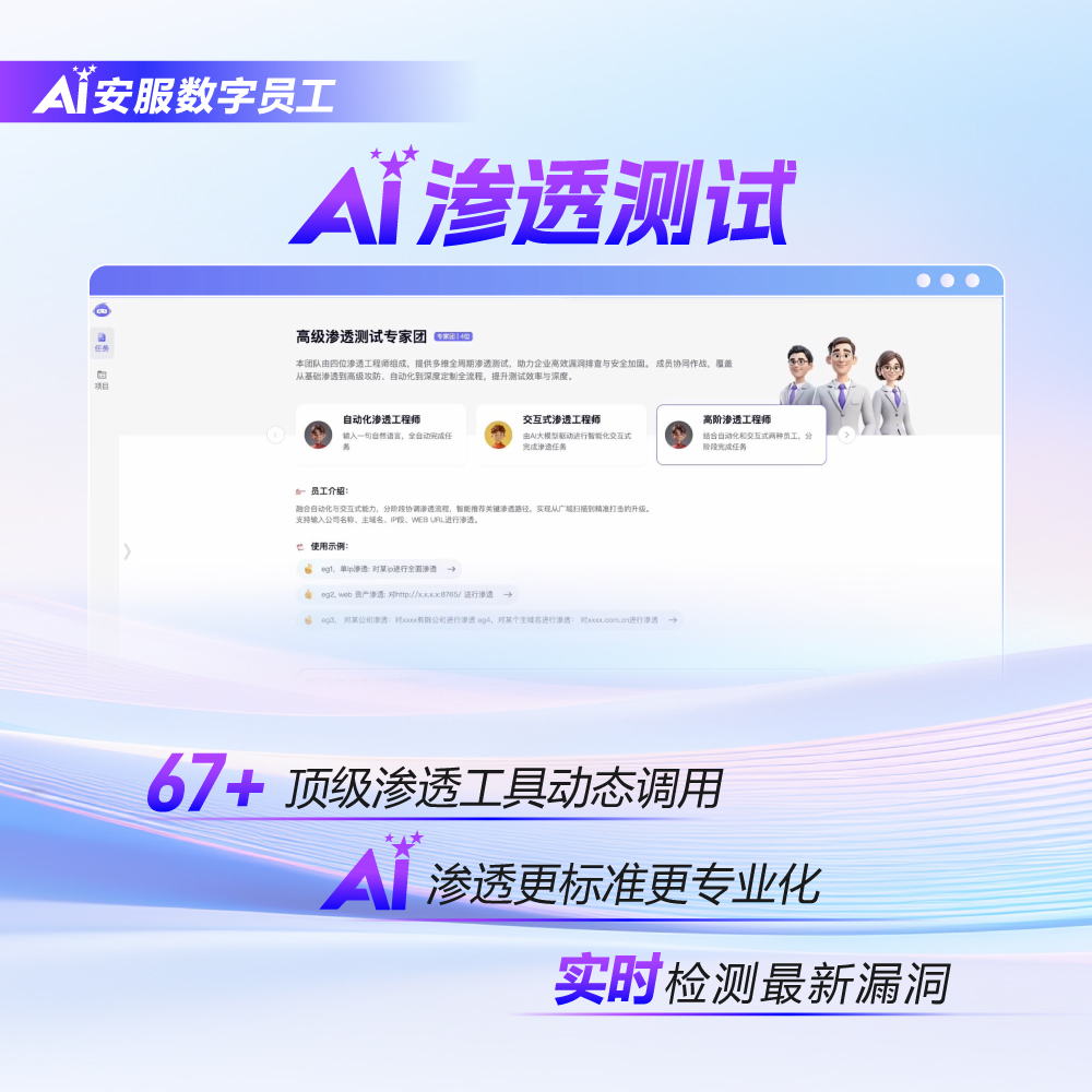 AI安服數字員工,讓安全服務從 "人工驅動" 邁向 "AI 自主",重新定義效率與精準的邊界。即刻申請免費體驗名額,填寫信息,7天免費試用,獲取專屬安全服務方案!