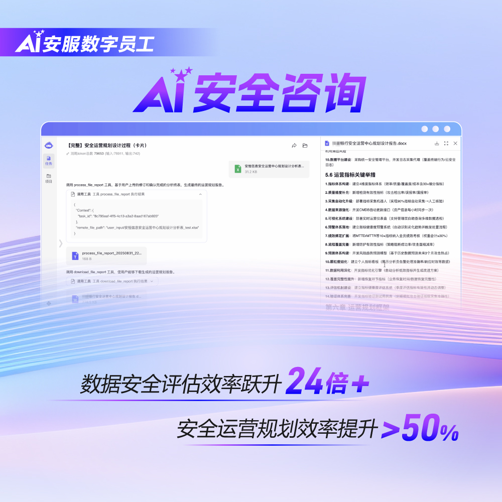 1.安全數字顧問:聚焦安全專業領域,針對咨詢需求提供精準化、專業化應答。?