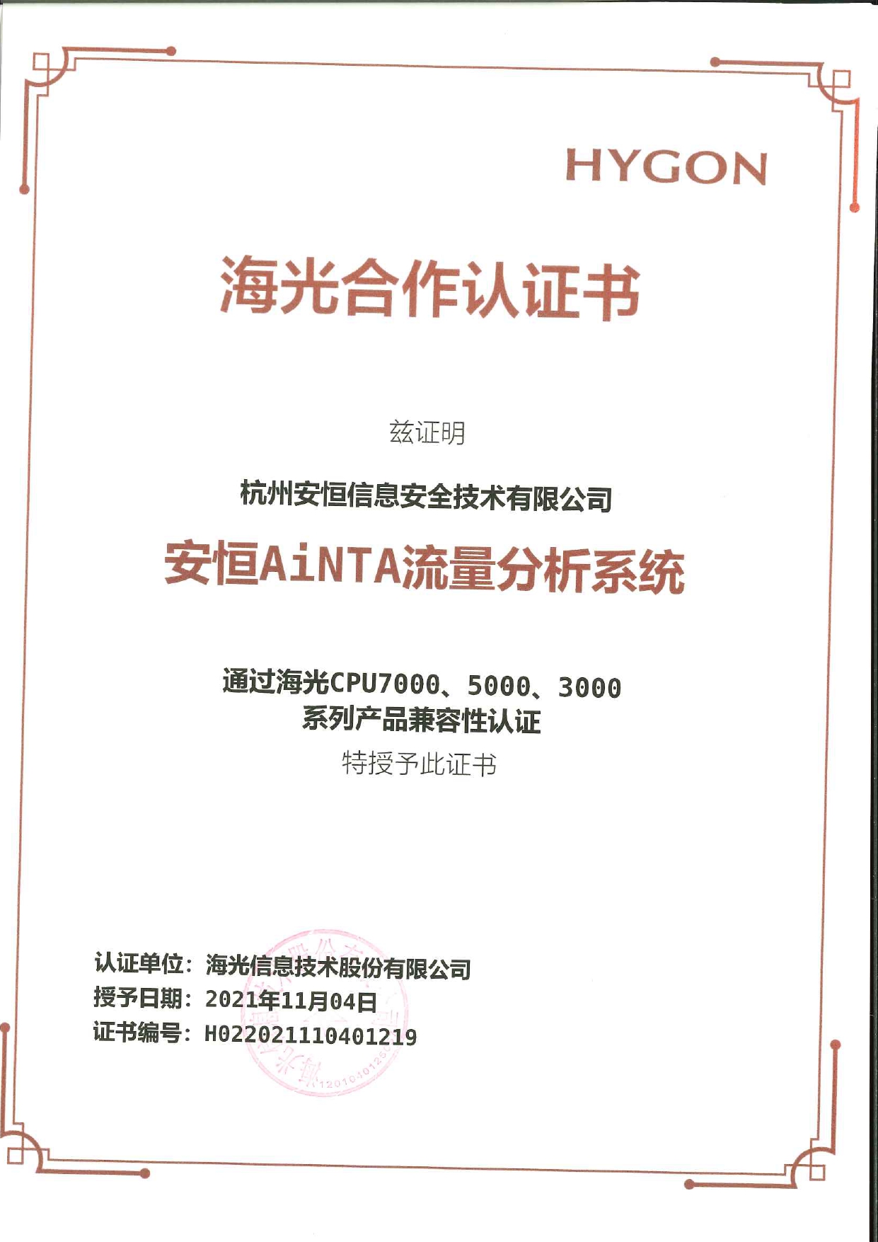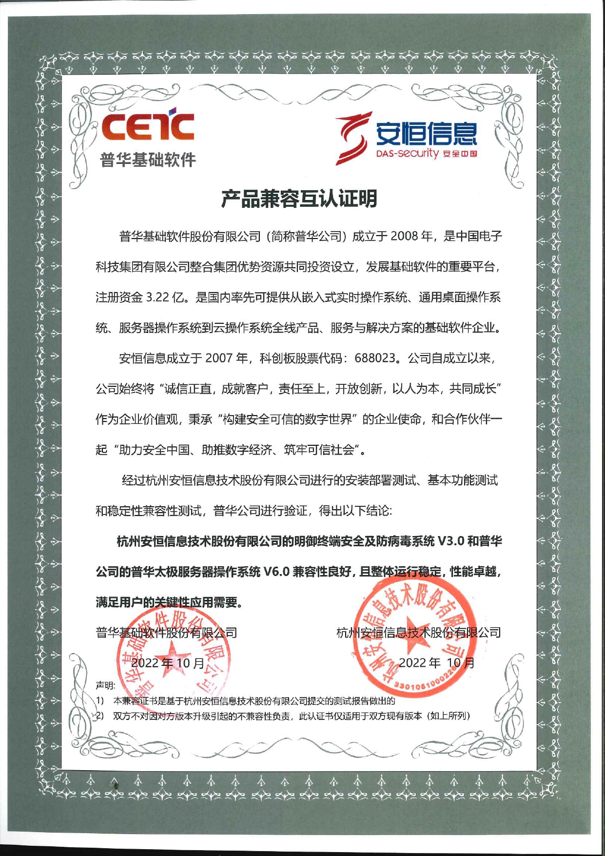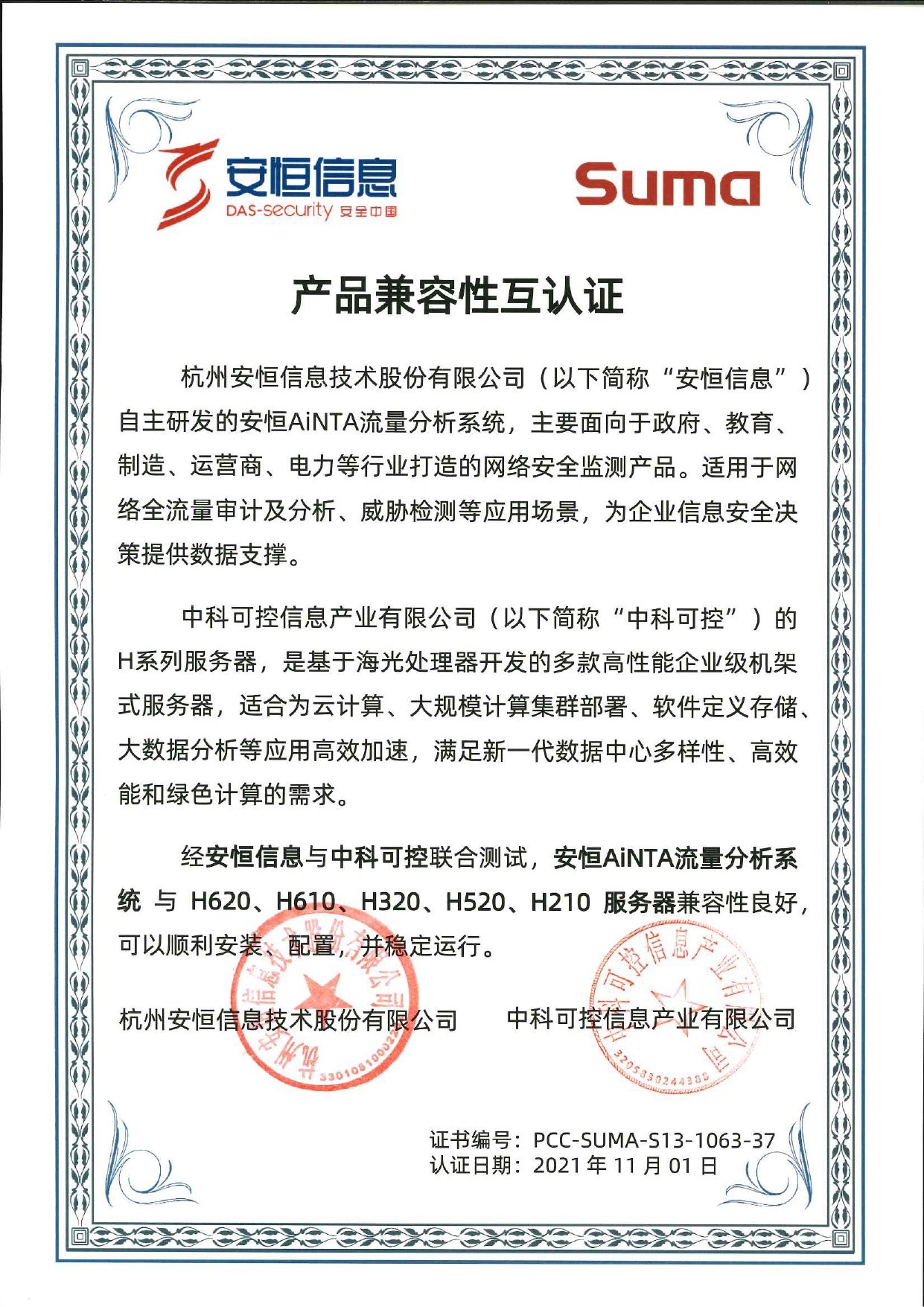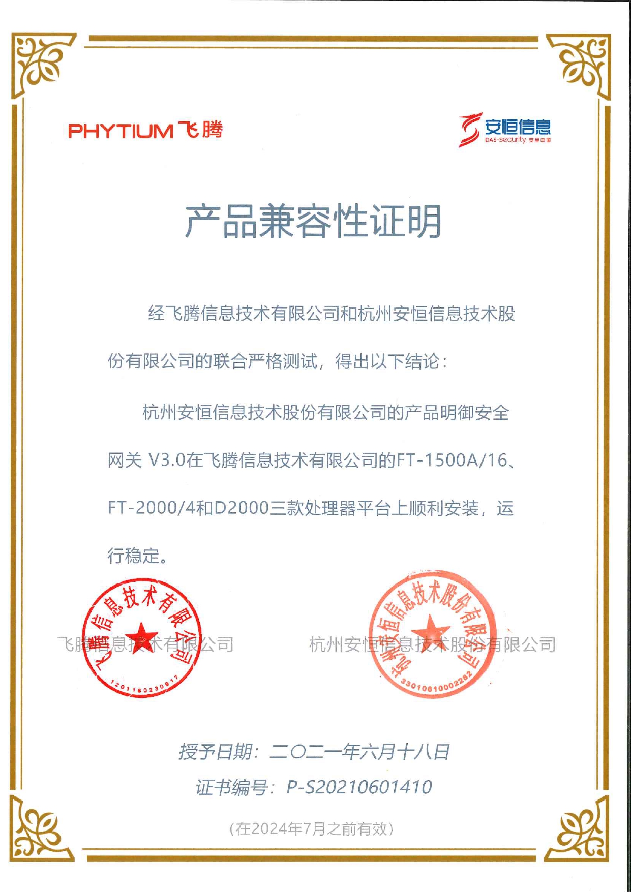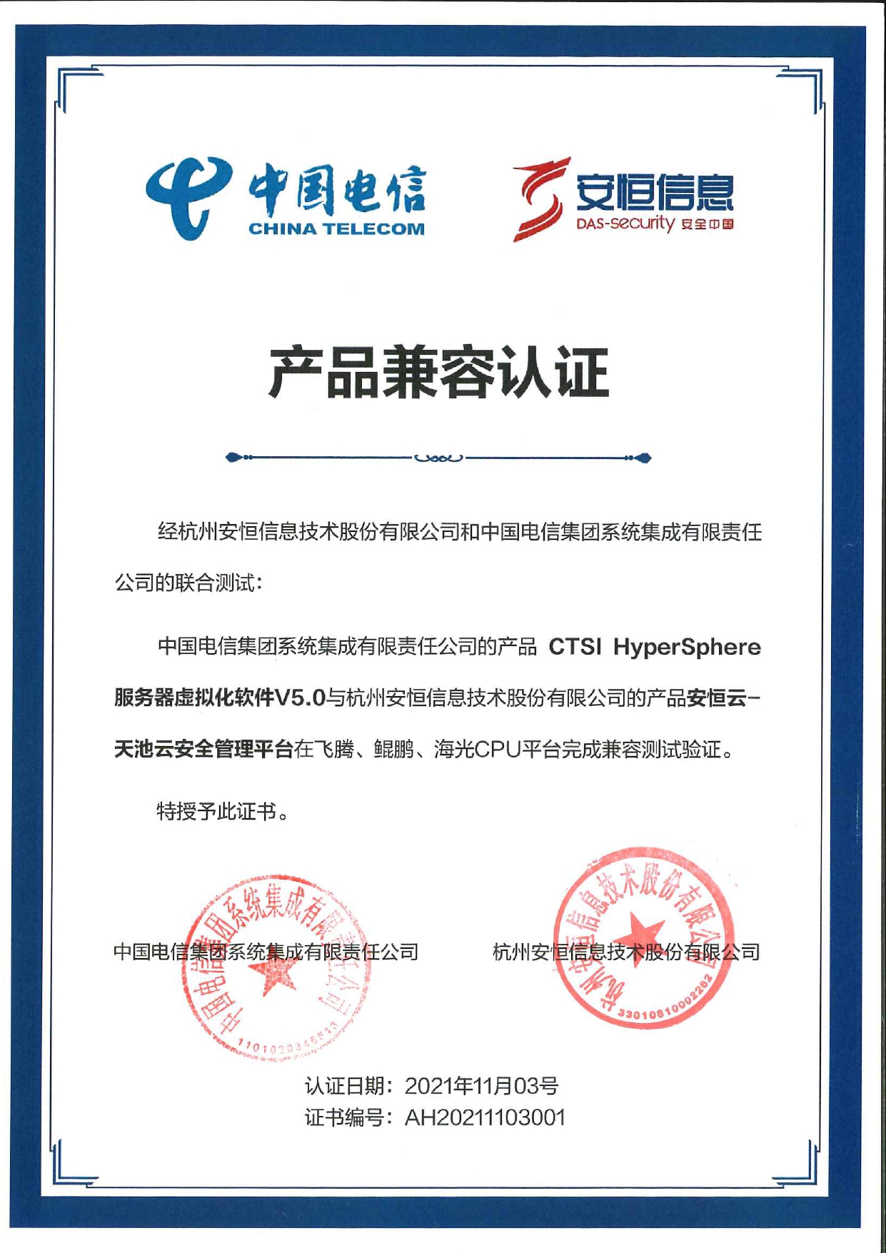 - 安恒信息AiLPHA大數(shù)據(jù)智能安全平臺、APT攻擊預(yù)警平臺分別與華為TaiShan 200系列完成兼容性測試。華為智能計算授予安恒信息HUAWEI COMPATIBLE證書及相關(guān)認(rèn)證徽標(biāo)使用權(quán)。