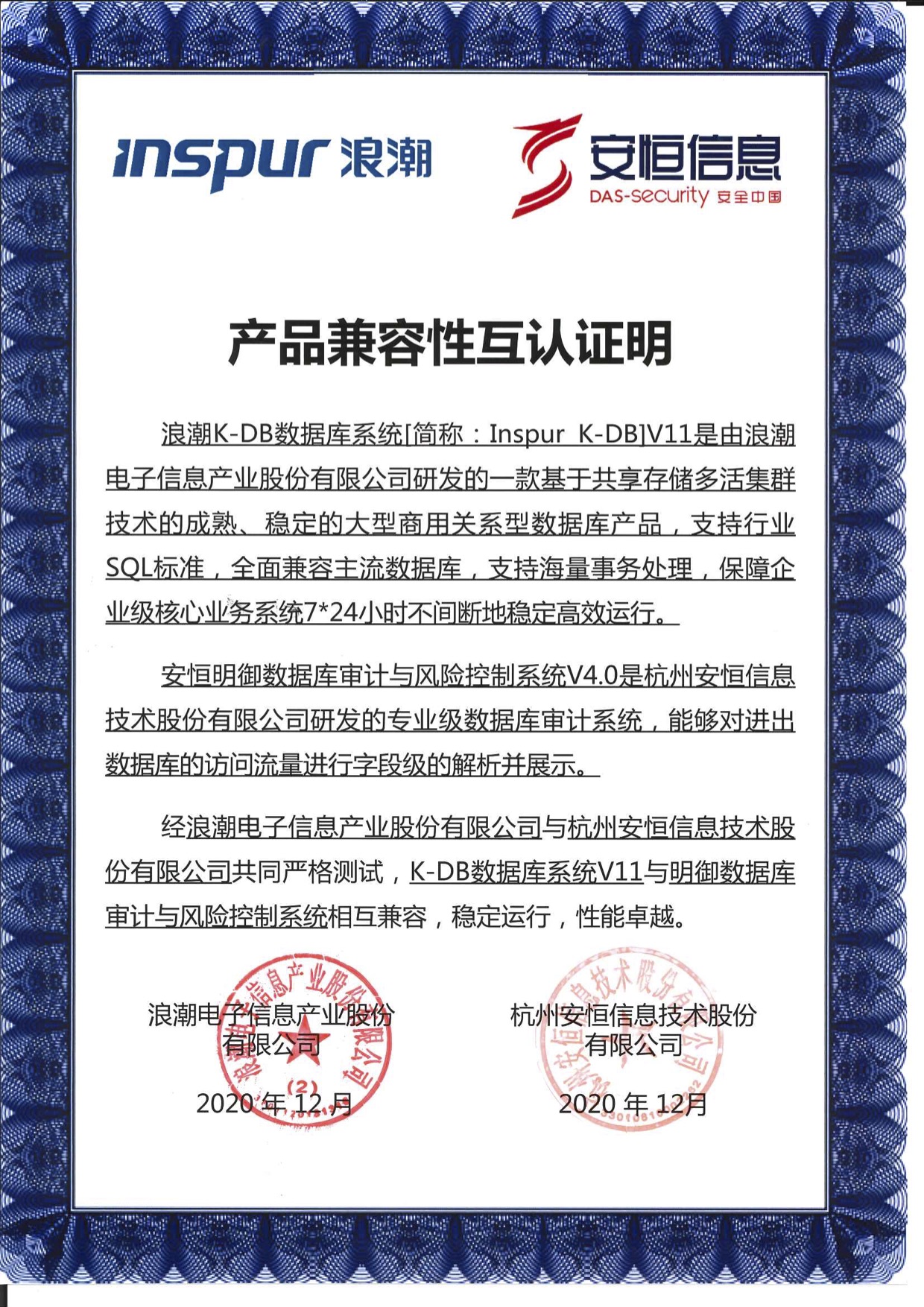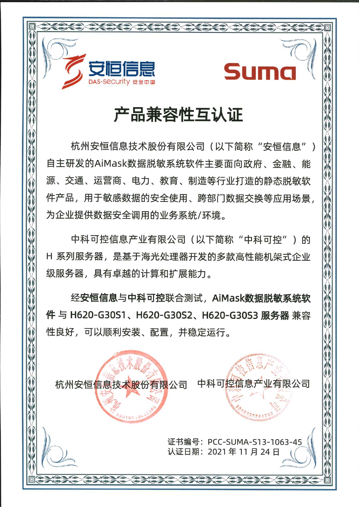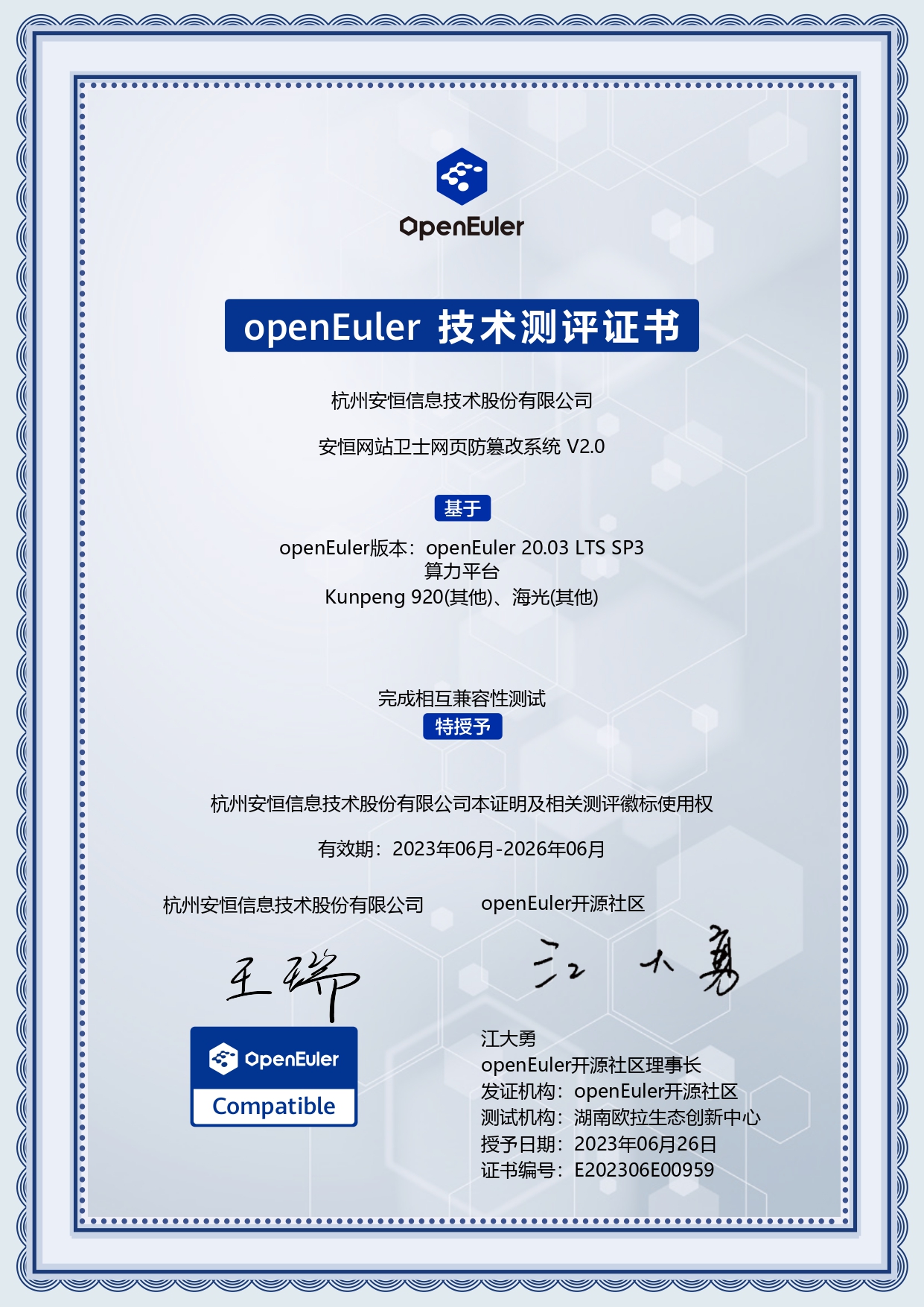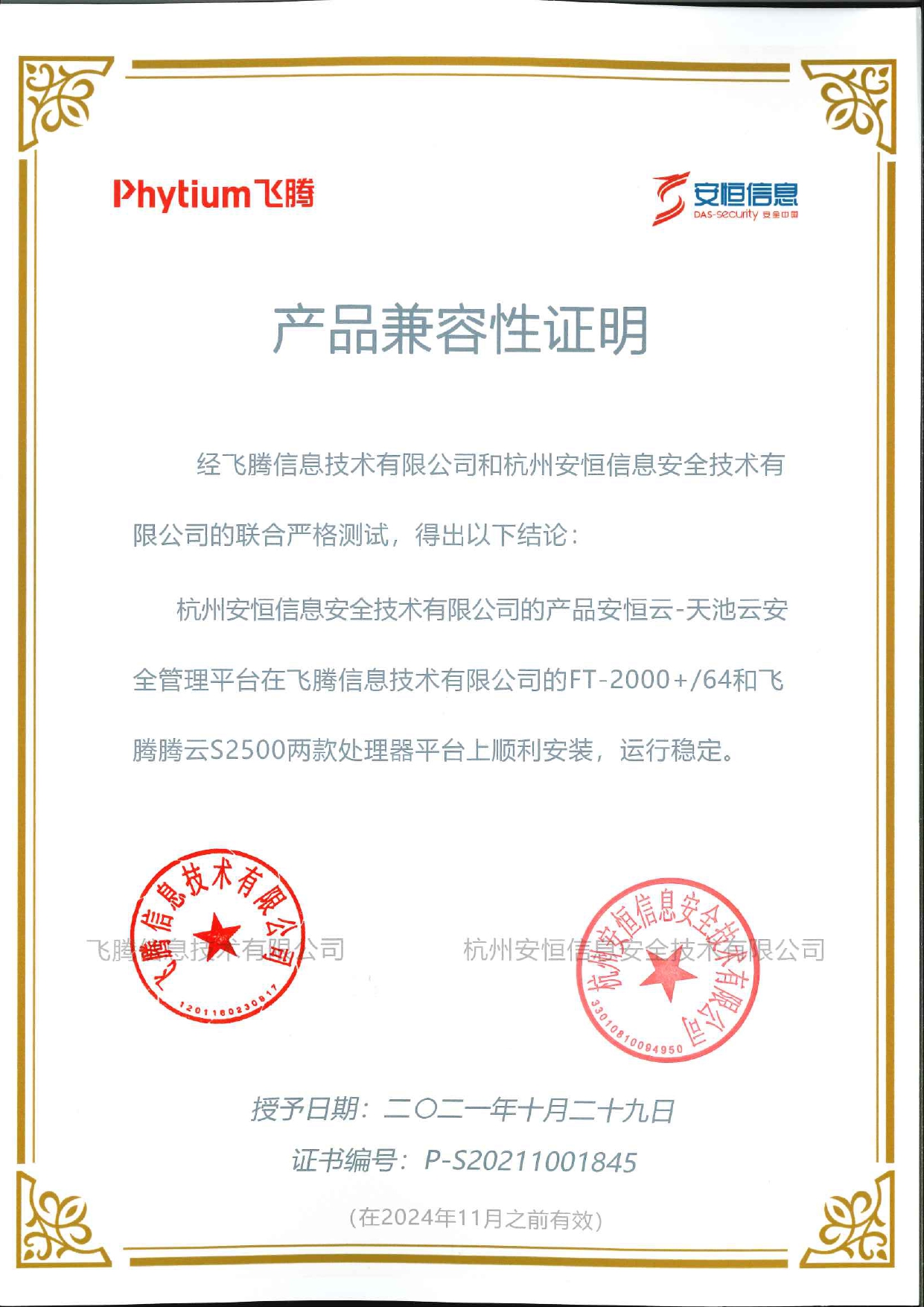- 安恒信息AiLPHA大數(shù)據(jù)智能安全平臺、APT攻擊預(yù)警平臺分別與華為TaiShan 200系列完成兼容性測試。華為智能計算授予安恒信息HUAWEI COMPATIBLE證書及相關(guān)認(rèn)證徽標(biāo)使用權(quán)。