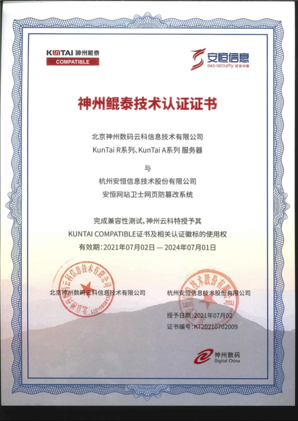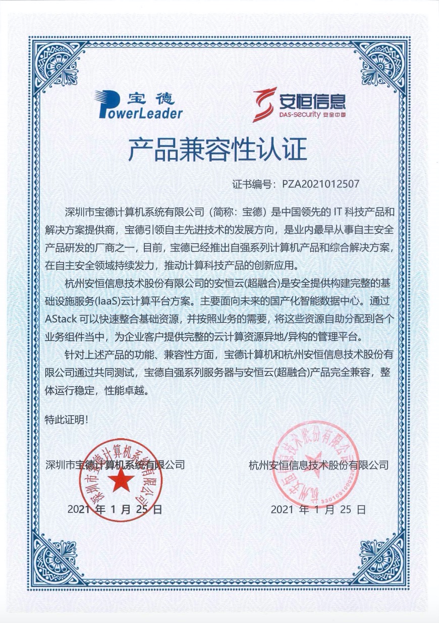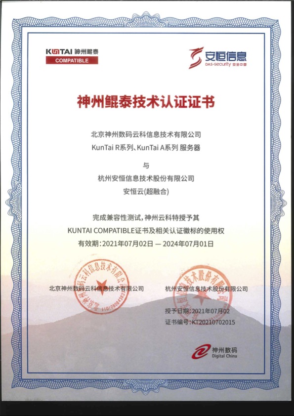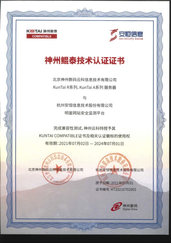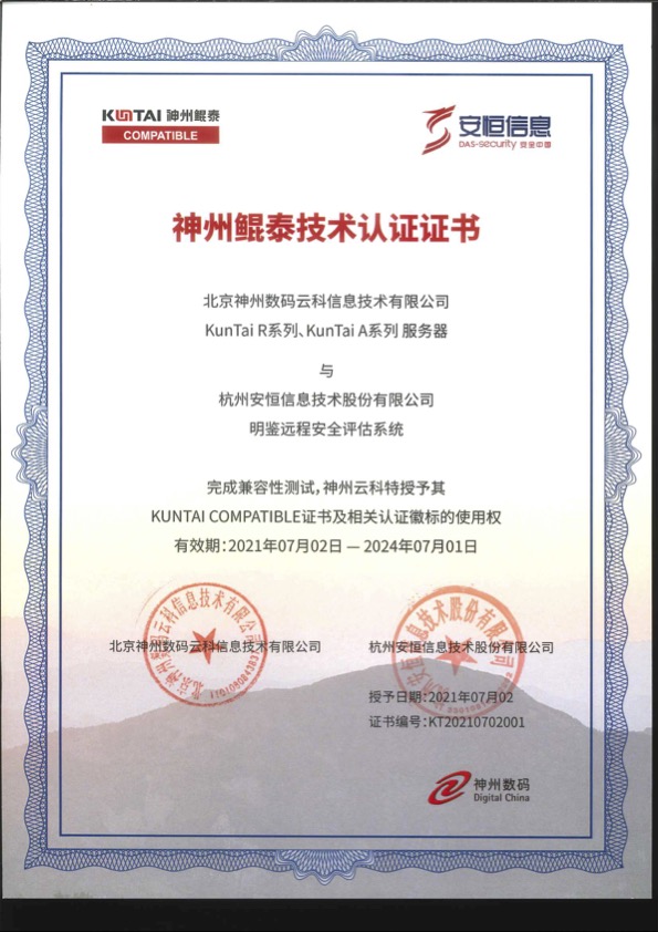 - 安恒信息天池云安全管理平臺成功與華為TaiShan 200系列服務(wù)器完成適配兼容性認(rèn)證