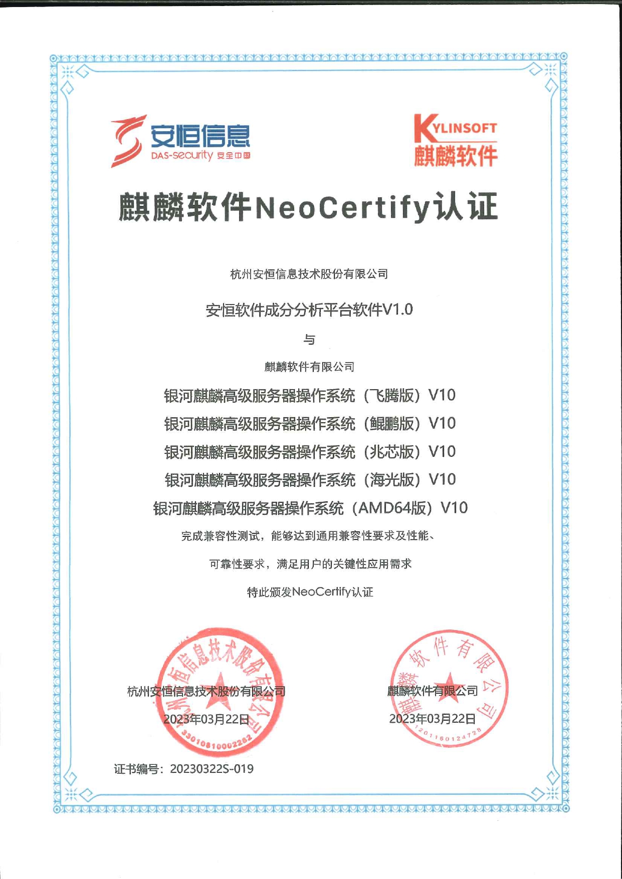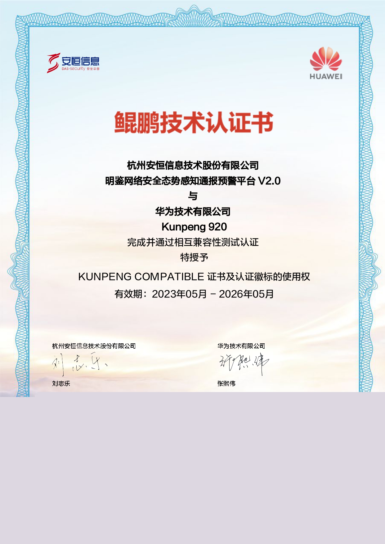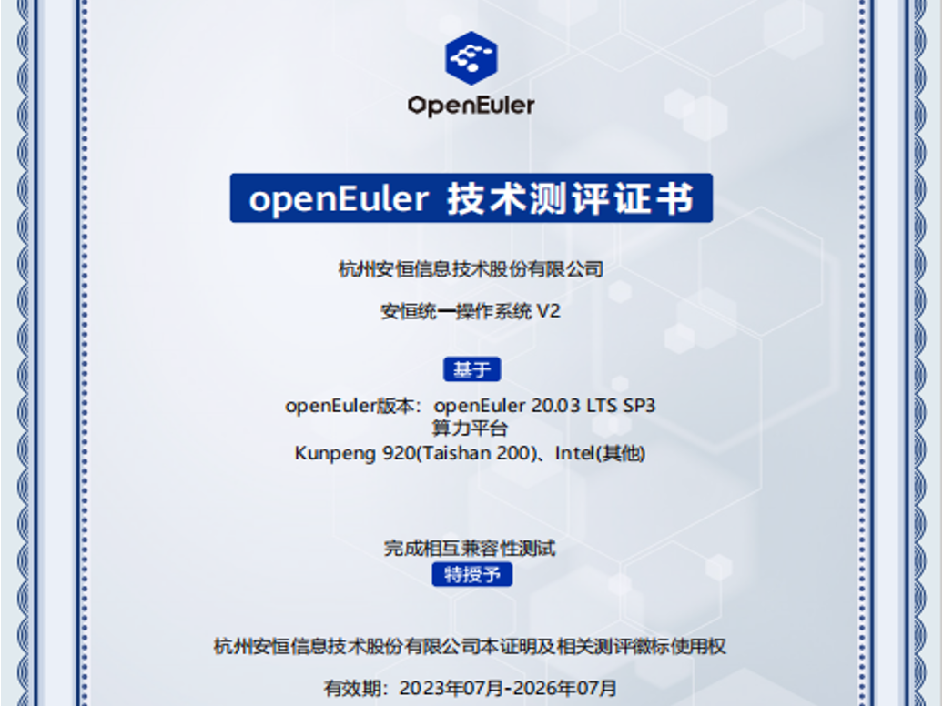 - 安恒信息天池云安全管理平臺成功與華為TaiShan 200系列服務(wù)器完成適配兼容性認(rèn)證