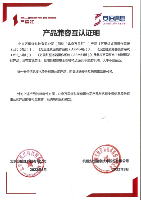 - 與UOS攜手共建信創(chuàng)安全生態(tài),并完成統(tǒng)一操作系統(tǒng)UOS與安恒EDR完成適配兼容