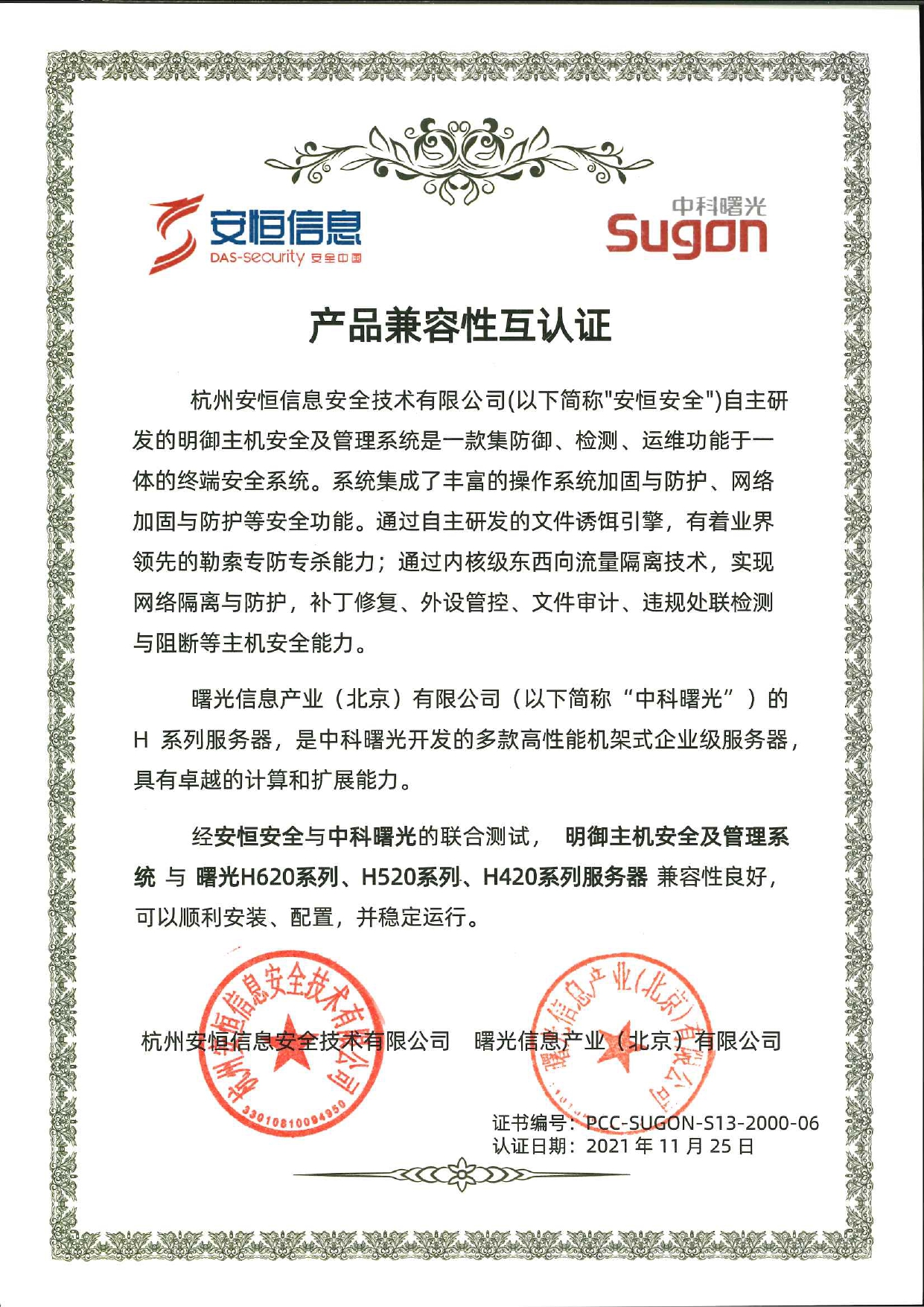 2022年2月28日,中科曙光與杭州安恒信息簽署戰(zhàn)略合作協(xié)議,將在各領(lǐng)域的技術(shù)創(chuàng)新、產(chǎn)品研發(fā)、解決方案、生態(tài)適配、市場推廣等多方面展開深入合作,共同推進(jìn)云安全解決方案。