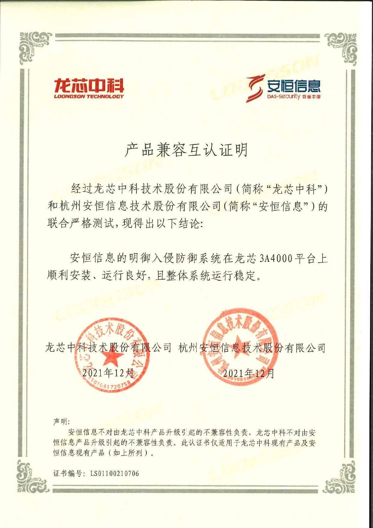 2019年12月- 安恒信息發(fā)布兩款新品適配龍芯新一代CPU
